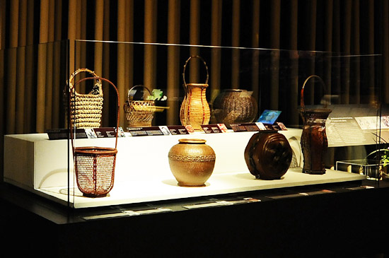 display of bamboo baskets and sculptures