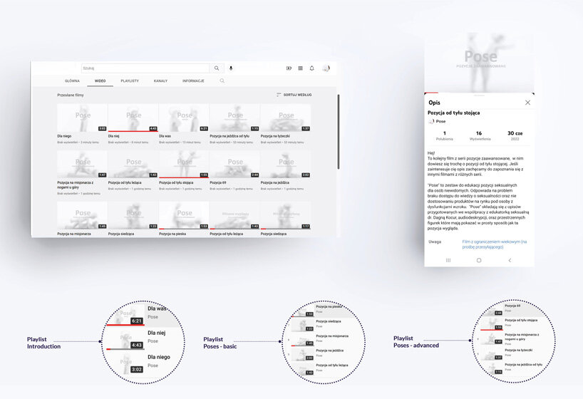 ‘Pose is a project dedicated primarily to individual users, sex educators, and organizations. The main goal of the project was to make knowledge available to the blind, hence the decision to record descriptions that everyone could listen to on YouTube. So far, in Poland, there is no product for sex education aimed at blind people. So, this is an innovative project in Europe, where this topic is surprisingly neglected. The descriptions were rewritten with sex educator Dagna Kocur. They are more detailed and pay attention to using the senses other than sight, so as not to exclude those with sensory disabilities,’ writes the designer.