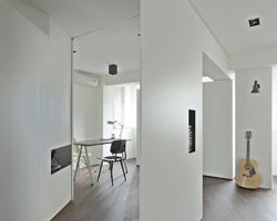 furthermore, considering that the owner has his preference and conception for a room separation, the team offered a proposal of space division when making the plan. ‘we divide the dimension into two circles, one of which being private, and the other is relatively public. the thought for the private sphere is to achieve the maximum possibility of the space usage, the ideal of which is that it can be used as a single big room, or as various independent existences at the same time, without any potential disturbances,’ notes the studio. in fact, the typical private area should include a gymnasium, a dressing room, a bathroom, and a main bedroom. as for the public circle, being influenced by the perception of human relationships, both living room and dining room are joined together with a light-food corner so that the interactions between family members can therefore be increased.