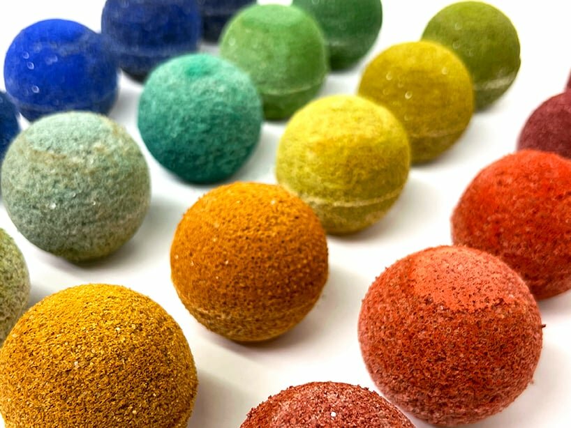 The installations draw inspiration from the vibrant mineral formations found in places such as Spain’s Rio Tinto and Ethiopia’s Danakil Depression, where microbial communities significantly contribute to the creation of striking mineral patterns. Building upon this, Gonzalez showcases the potential of bacteria to create biocement, a sustainable alternative to traditional concrete which is produced through a delicate act of cultivation and creation.