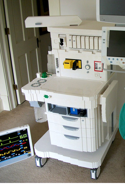 LEGO anesthesia machine by eric harshbarger the drawers look the same as on the original, but do not function