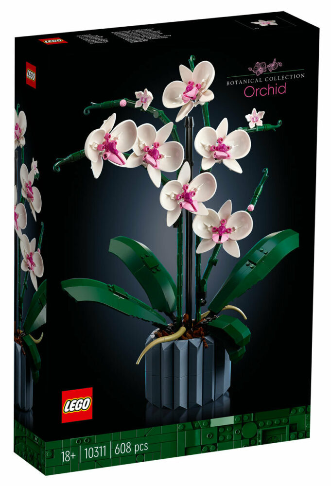 Just like the real thing, LEGO Orchid features six white and pink blooms, five leaves, and two air roots set in a light blue plant pot. Composed of 608 pieces, the built set measures over 39 cm (15 inches) high, 30 cm (11.5 inches) wide and 24 cm (9.5 inches) deep. Creative builders can also craft their own flower arrangements for a personalized orchid display.