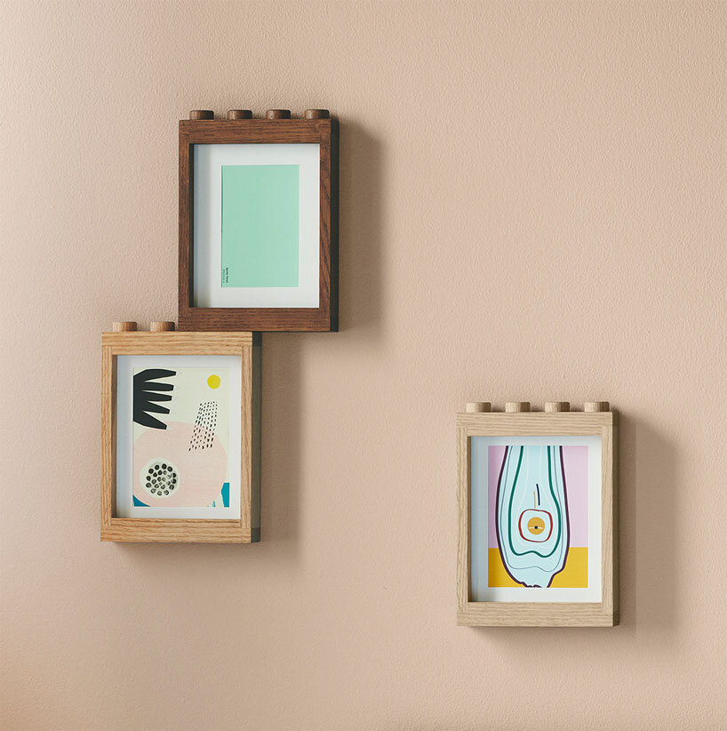 playing with scale and function, the team at LEGO group creates a set of wooden homeware, with pieces that stack like their iconic bricks. the collection was designed together with danish brand room copenhagen and includes picture frames, wall hangers, book racks, and desk drawers. because each piece is crafted according to the original dimensions of LEGO bricks, the desk drawers and picture frames can be stacked into unique configurations.