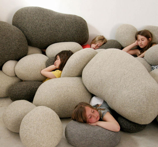 ‘livingstones’ are a series of modular seats by the french designer stéphanie marin, that have the appearance of oversized pebbles. ‘livingstones’ are available in wool or neoprene to suit indoor or outdoor needs respectively and also come in a variety of colors.