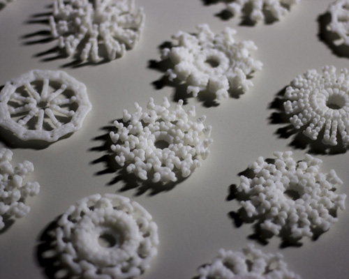 collected data is sent to ‘grasshopper’, a parametric software that models three-dimensional objects. after the data translates, final pieces–in the form of mandalas–are visualized on the computer and sent to a 3D printer. the prints can be made in ABS plastic, polyamide, glass, ceramic, or metal. each product is unique to its creator, and contains their most intimate moments. ‘love project’ investigates new possibilities arising within the digital era and questions the logic of creation, production, and sales