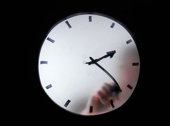 the passing of the time within this clock is given by multitudes of people brushing – shot and screened in a true interval of 12 or 24 hours