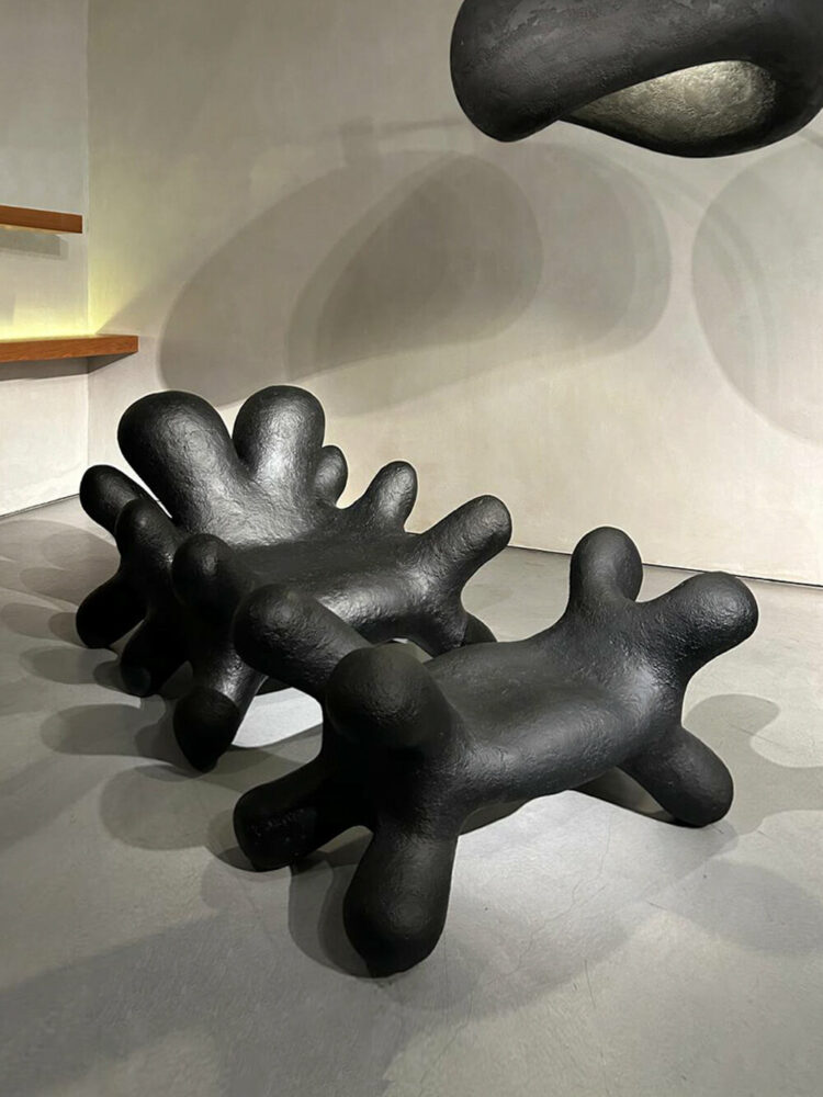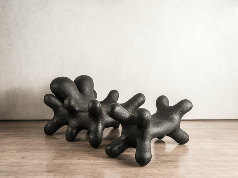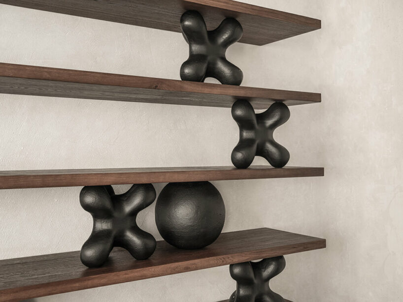 the design centers around a sculptural turntable topped with thirty-nine individual wooden tiles that flip and shift in real time as music plays.