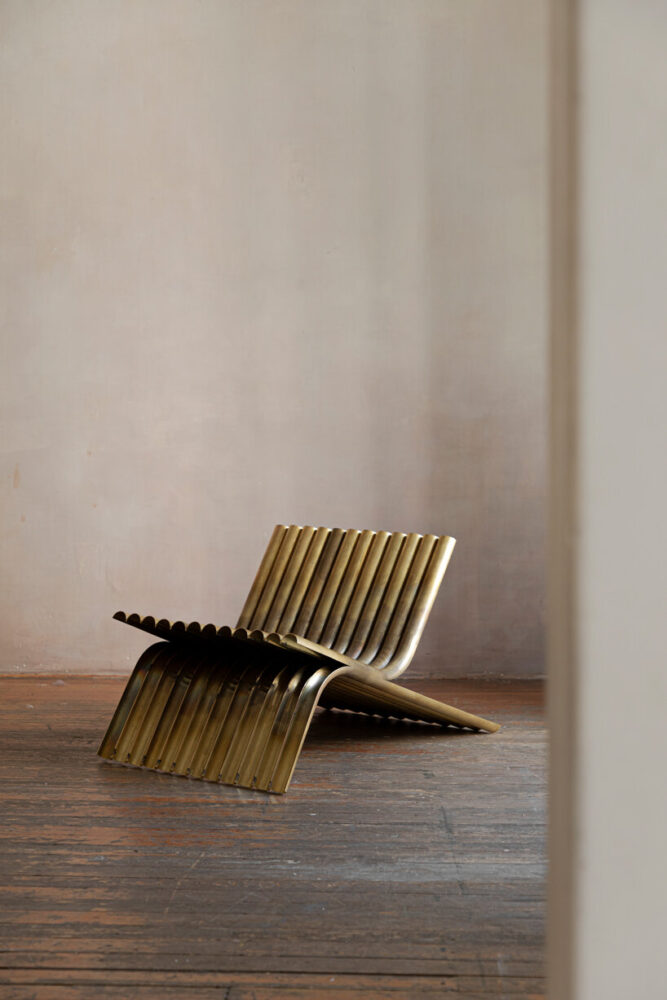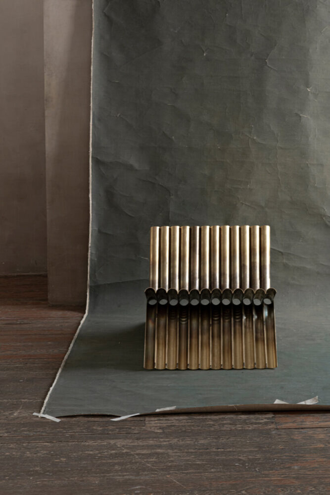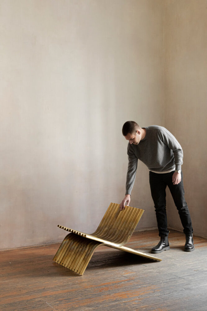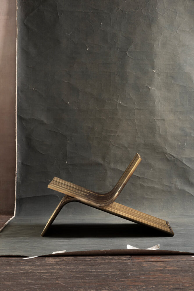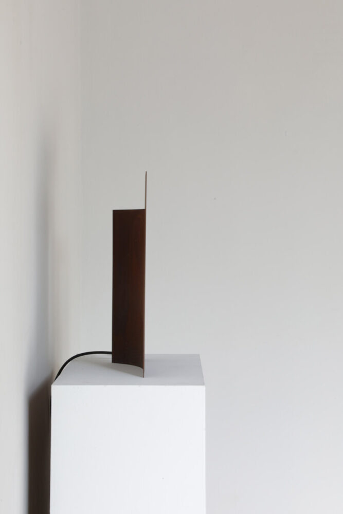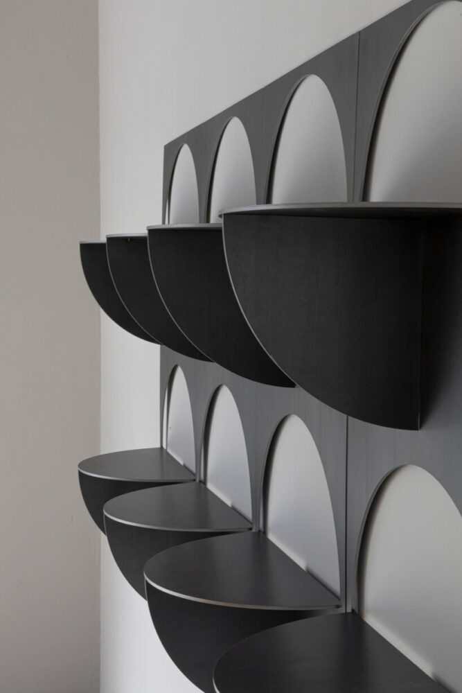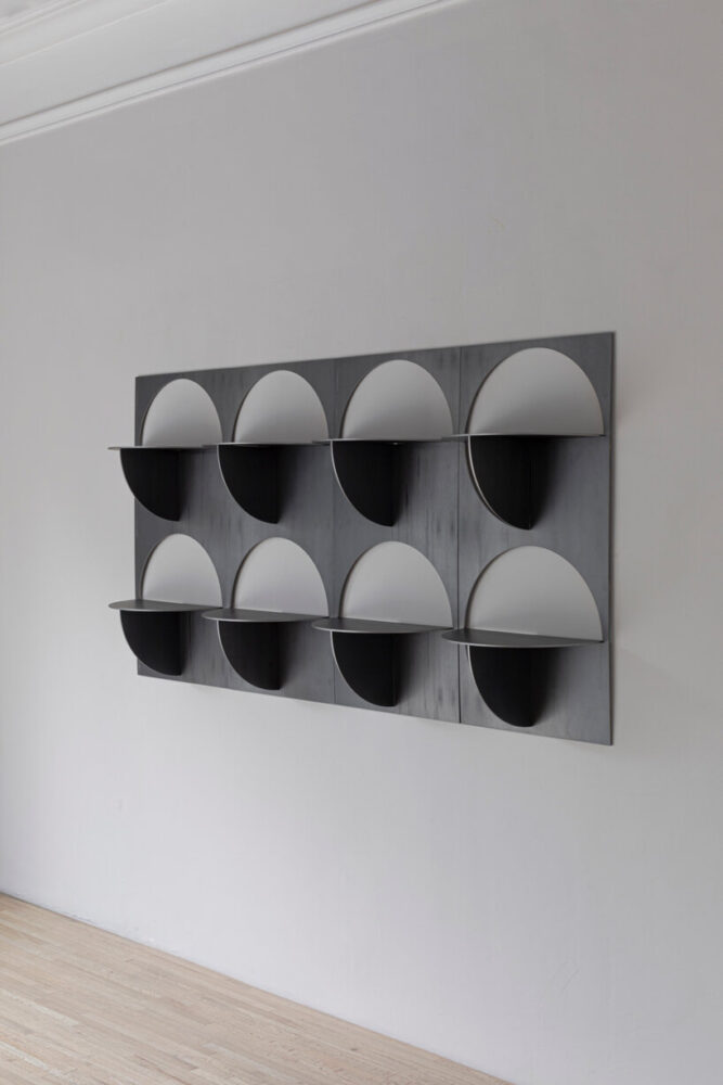 the design centers around a sculptural turntable topped with thirty-nine individual wooden tiles that flip and shift in real time as music plays.