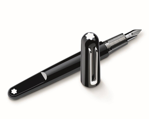 aesthetically, newson has maintained the distinctive elements of montblanc with the use of a black precious resin for the body. the plateau at the end is obtained through milling the material using a diamond tool, shaping its fluid lines. the iconic montblanc emblem is also embedded using ultrasonic welding to ensure a surface that is perfectly flat and smooth, while the clip is rendered with platinum plating and is mounted to the cap in a invisible way, as to not interrupt the lines of the design.