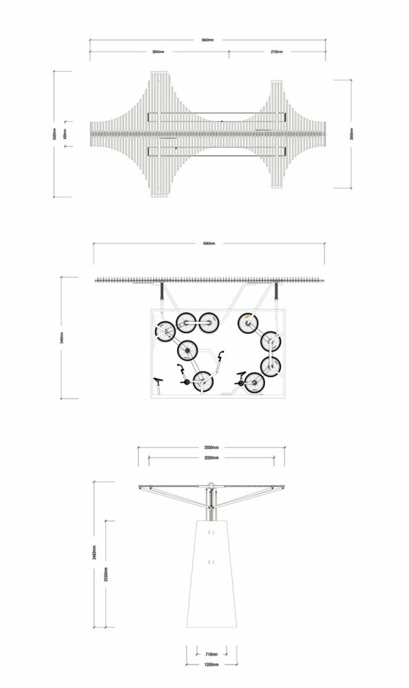 the design centers around a sculptural turntable topped with thirty-nine individual wooden tiles that flip and shift in real time as music plays.