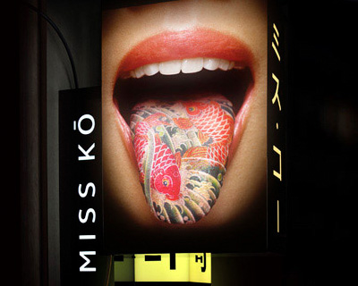 the miss kō signage was designed to replicate the many different bright, overlapping signs found in a busy asian street.