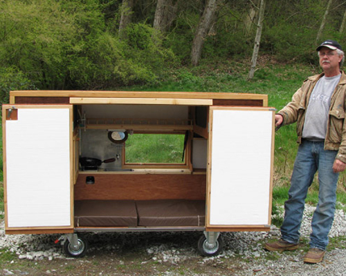 a cooler is built into the kitchen counter, made from a two gallon water dispenser