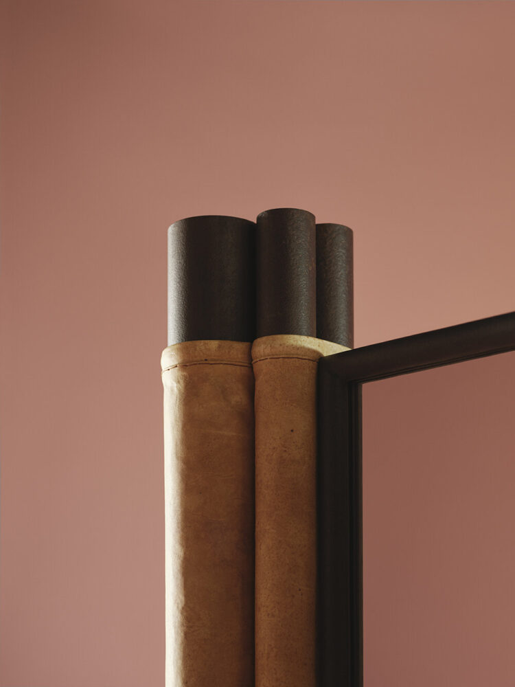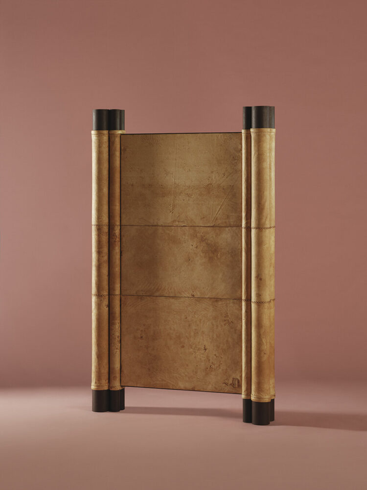 Inspired by the ornamental screens of 1930s designers such as Jean-Michel Frank, interior architect Fanny Perrier has designed a six-panel Reishi™- covered screen on a solid, recessed base with silent glides. In its use as an ecological and virtuous covering, Reishi™ renews a typology of objects formerly made of parchment or leather. Perrier founded her agency after working for Patrick Jouin and Joseph Dirand in 2017. From boutiques for shoemaker Repetto and jeweler Viltier to restaurants such as Le Perchoir, requests quickly followed one after another for her keen eye. Her timeless, refined style makes the most of color, using touches of vintage furniture from the 1930s to the 1970s to render each space a story of its own.