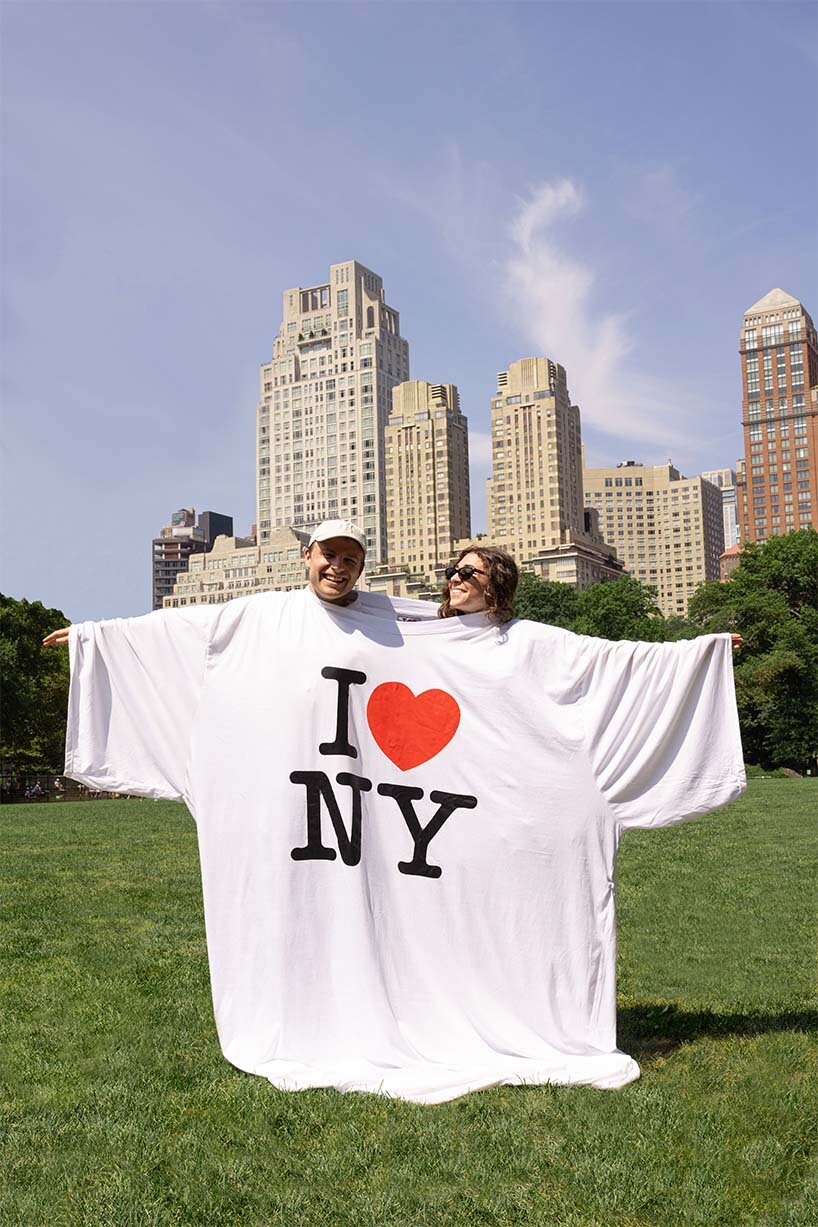An ode to Milton Glaser’s iconic ‘I <3 NY’ design, a giant t-shirt shaped picnic blanket encapsulates the essence of shared memories in the expanse of Central Park. As an emblem of impromptu gatherings, the design embraces the concept of communal sharing and fond makeshift picnic moments where an extra t-shirt doubles as a picnic cloth. Enlarged to accommodate 2-4 people, this t-shirt-turned-blanket marked with the city’s beloved logo questions: ‘What would the Great Lawn, look like scattered with ‘I <3 NY’ t-shirts? How can distorting the size of a common object create something spatial?’