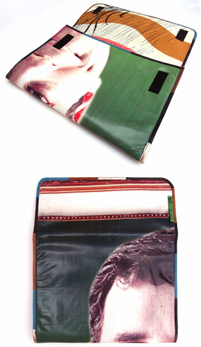 as seen at designboom mart seoul 2008, ‘flexie’, by indian designer nupur goenka of ‘let’s‘, is a series of upcycled tote bags constructed out of discarded flex sheets and old saris. each product is completely unique and hand-made.