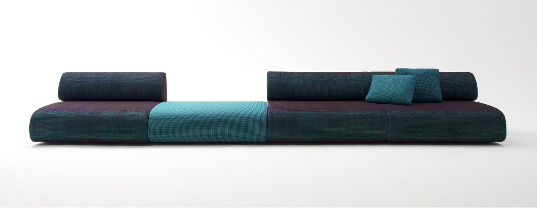 The sofa is served with the exclusive Brio and Twin fabrics both designed by Paola Lenti.
