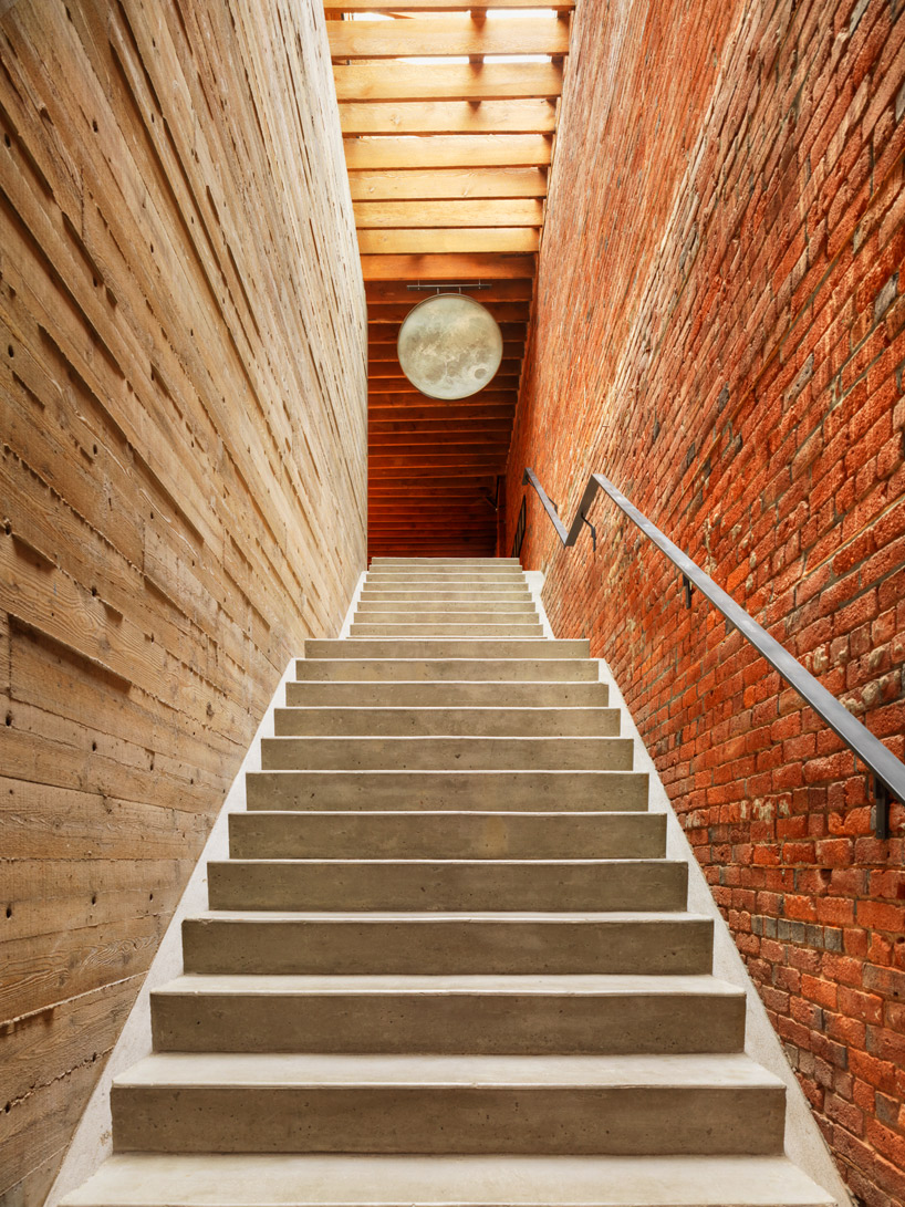 the living area maintaining the original brickwork from the heritage building image © martin tessler
