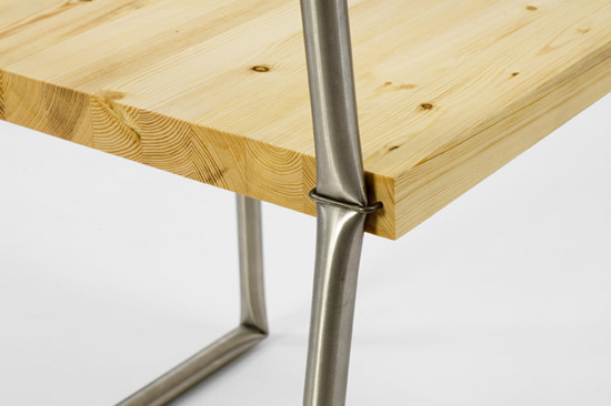 left: ‘kink chair’ right: ‘kink cantilever chair’‘kink’ includes a writing table, a cantilever chair, a sideboard, a shelf, a coffee table and a floor lamp whereby each piece is identified by a different kind of deformation. all exhibited objects are limited edition pieces and are exclusively available at helmrinderknecht contemporary design gallery.