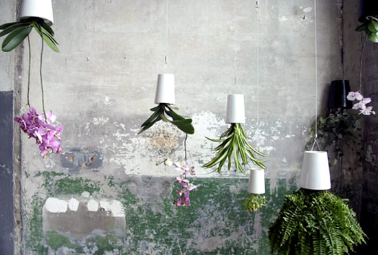 designed by central saint martins graduate patrick morris, ‘sky planter’ provides a solution to fussy plants in small spaces or a way to use plants as design elements. the ‘sky planter’ made of ceramics locks the plant and soil into the place and hang from a ceiling or wall-mount. a reservoir hidden in the top waters plants gradually.