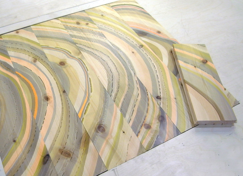 image © designboomthe wooden planks are made one by one, and thus each floor board acquires a unique pattern of colored stripes.