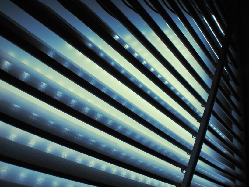 standard window blind with attached LED visualization expressing idea of artificial windows