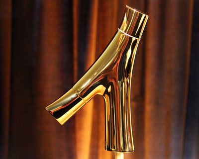 we have updated the original article from september 19th, 2012–below see images of the new finishes available for the ‘AXOR starck organic’ bathroom collection, along with a new video of philippe starck talking about his design at the north american premier of the collection during new york design week 2013. for its debut, AXOR has showcased the bathroom fixtures in a lustrous gold custom finish, which illustrates the exclusivity of the line.