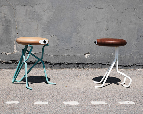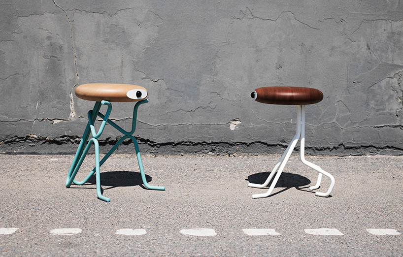 the ‘companion stool’ series by phillip grass has a poetic and humoristic touch evoked by the form of anthropomorphic characters. the aim is for the furniture to have an influential impact on the viewer and user, providing them with a friend in the comfort of their living room that can keep them company. aside from their original function, they can also be used as an extra chair and a small table, as well as a piece of art.