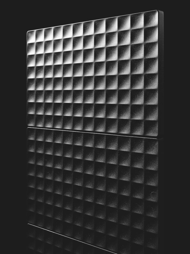 the design centers around a sculptural turntable topped with thirty-nine individual wooden tiles that flip and shift in real time as music plays.