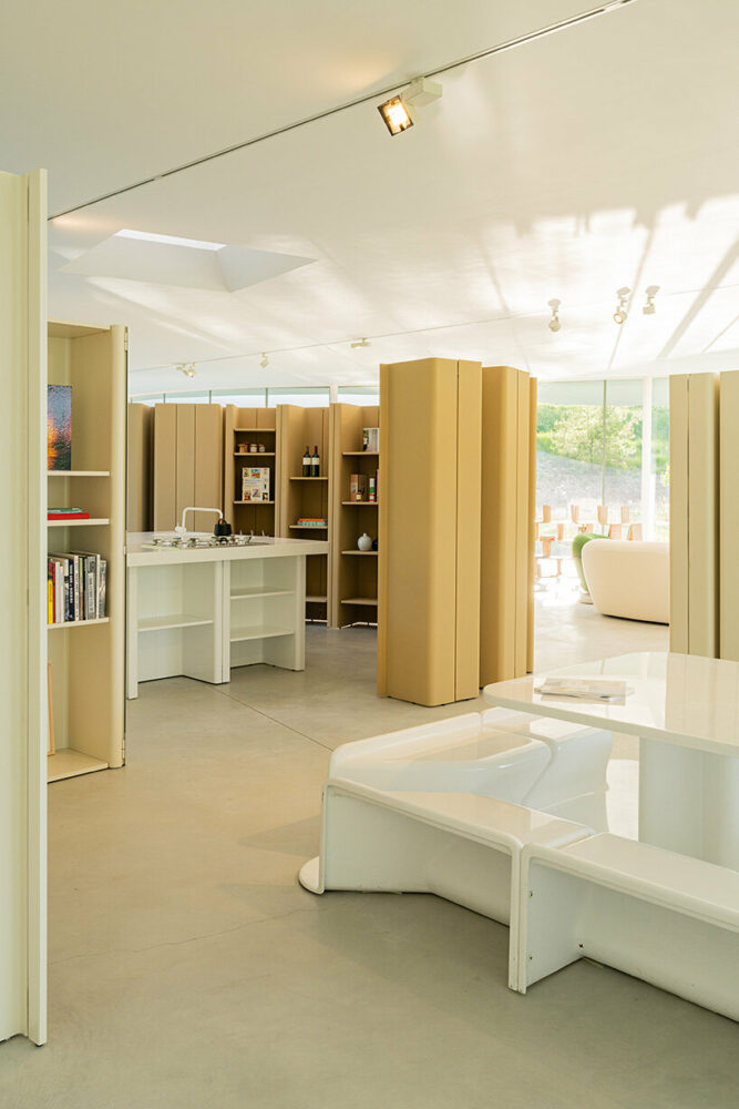 Paulin designed and visualized the Program through a series of six models that are now part of the Centre Pompidou collection and on display as part of the exhibition. A core model shows the basic elements of the project and how the modules can be assembled or arranged to create a personal living space. Five other models help users realize the program’s potential by stimulating their imagination to envision a variety of combinations. This exhibition brings Model Five to life and allows visitors to interact with the surrounding architecture and design.