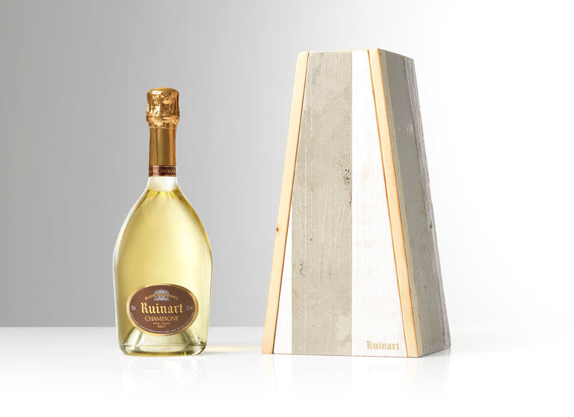 ruinart champagne beside its handcrafted box designed by eek