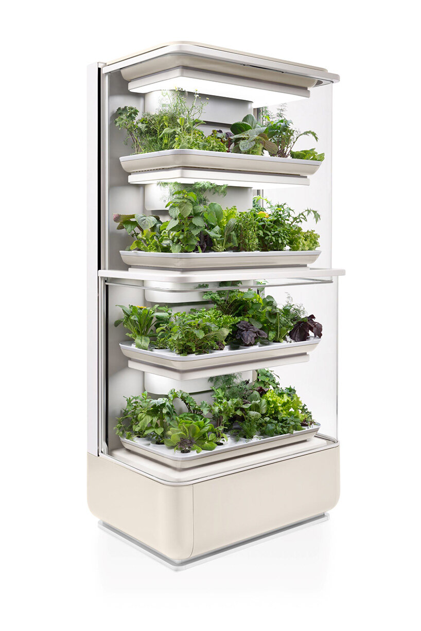 designed by pininfarina and produced by la grangette, the indoor vegetable garden combines a sleek design with the latest technology, allowing the simultaneous cultivation of 64 plants, choosing from 43 varieties of salads, aromatic herbs and healthy.