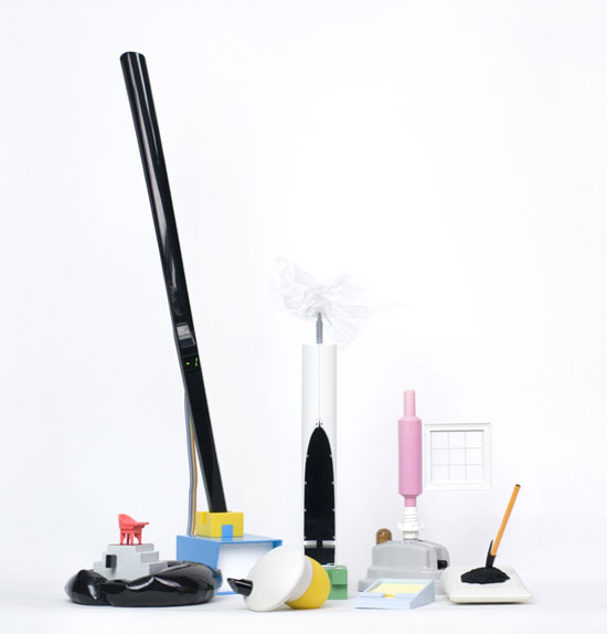continuing their anti-design explorations, committee’s ‘plastic fandangos’ are non-sense products; visions of quotidian items from a parallel universe that parody and expose the oddness of our own familiar gadgets. they were designed to explore our perception of usefulness in product design and to question why things have evolved to be the shapes they are.