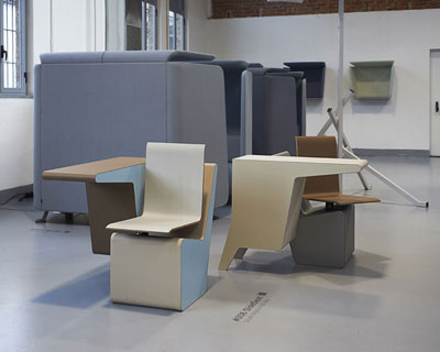 how do you provide an environment which allows for changes in work focus and accommodates a full capacity workforce at the same time? how do you ensure that your visitor is free to decide how he spends his waiting time? prooff #006 sideseat provides a solution: a self-contained desk, cupboard & chair that moves with you.