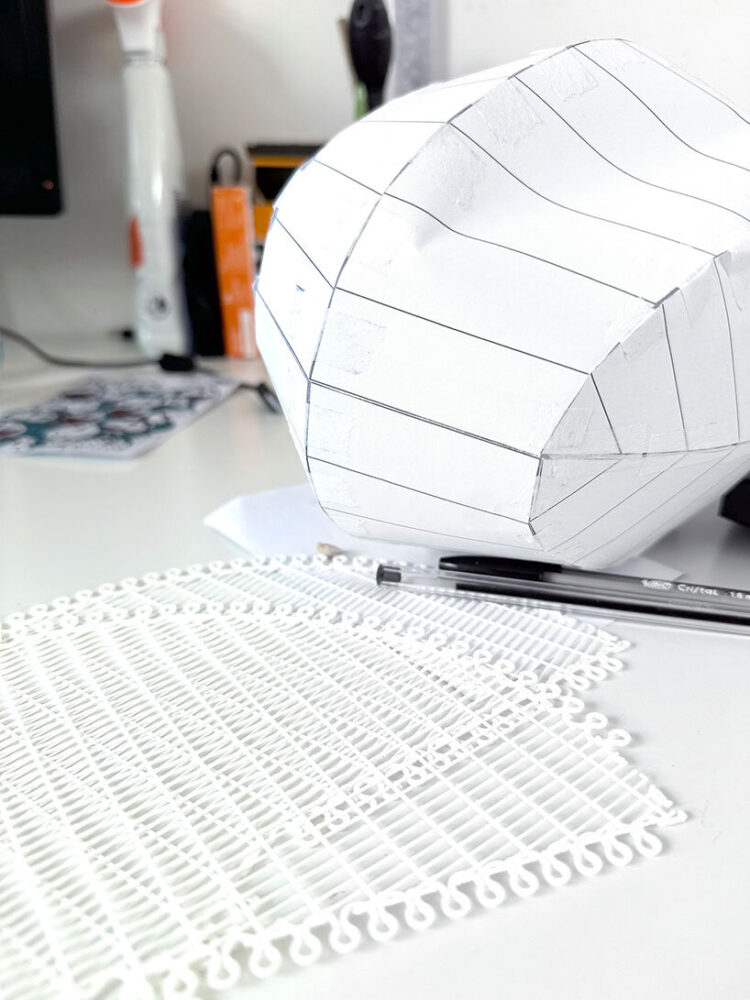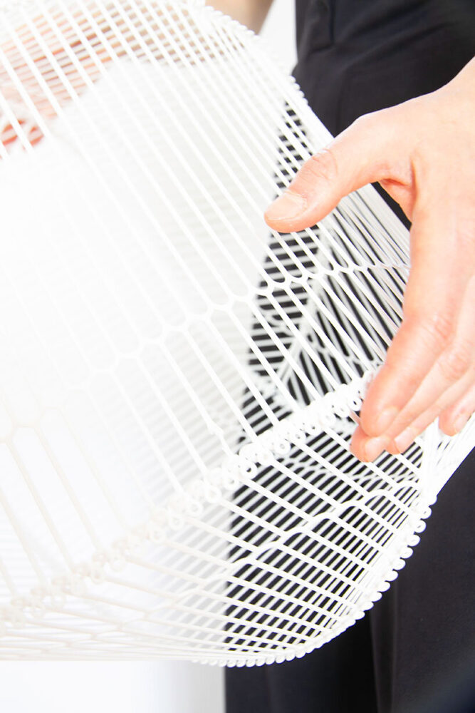 the design centers around a sculptural turntable topped with thirty-nine individual wooden tiles that flip and shift in real time as music plays.