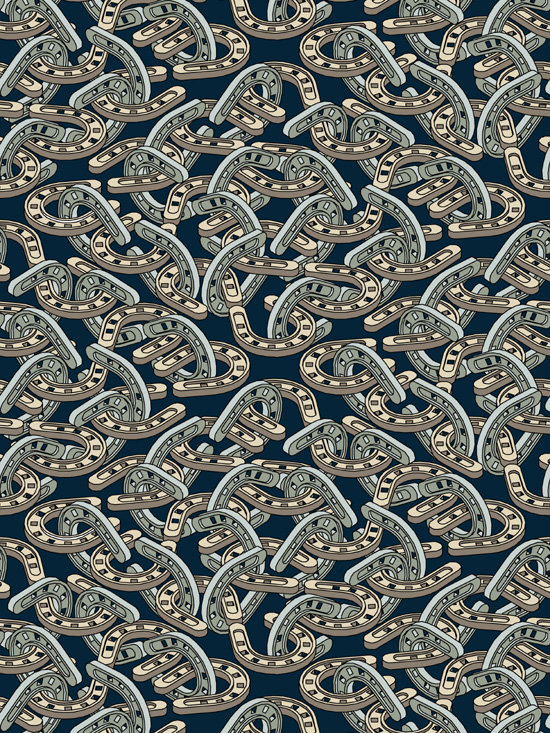 designer’s own words: ‘the geometrical pattern is composed of series horse shoes rendered as 3D CAD models. from afar, they appear just as a geometrical pattern, and within a short distance, the tiny horse shoes become recognizable.’