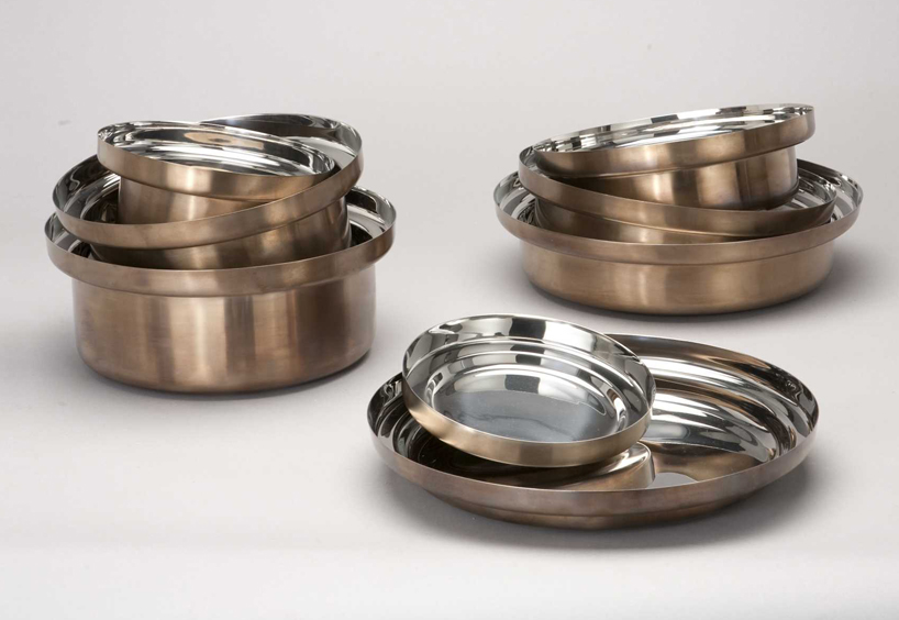the family of pots, pans, bowls and plates have been designed and manufactured to be