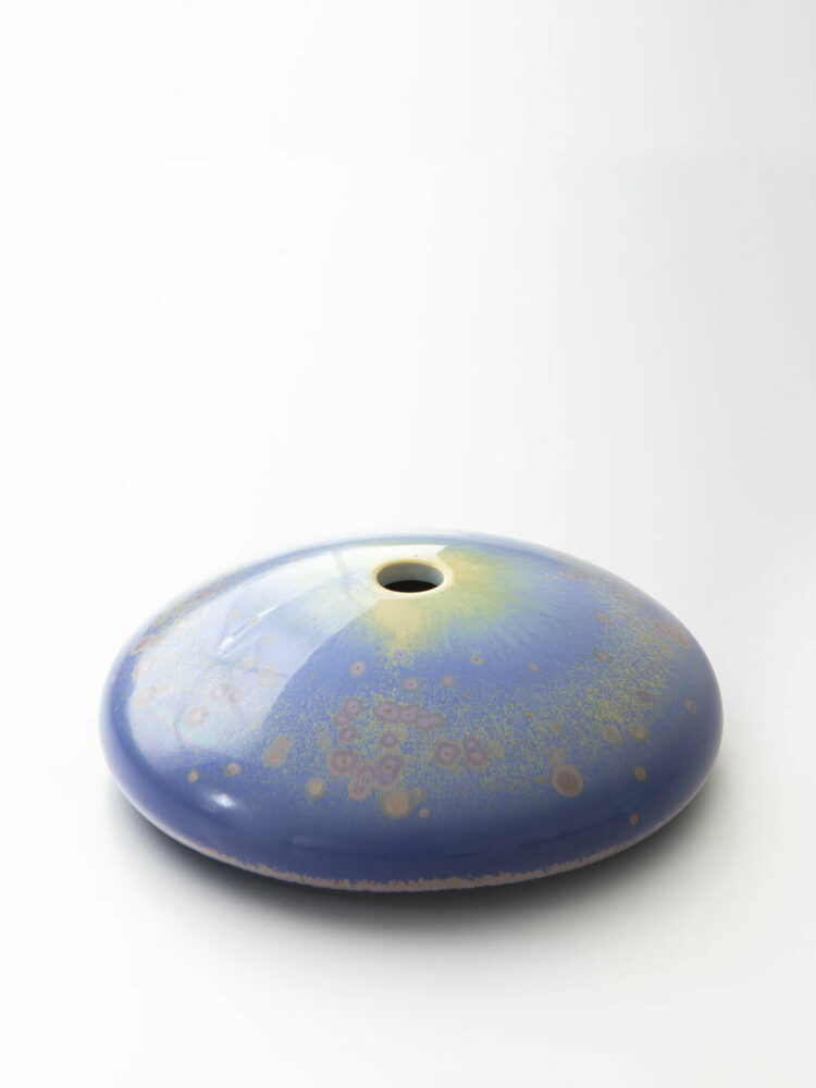 This spontaneity adds an element of natural beauty and uniqueness to each piece, making them come alive with individual character. The designer beautifully captures this phenomenon, stating, ‘It all quite delicately explodes in the kiln, and when the pieces are taken out, you’re not quite sure if they might be alive. It could be a sea anemone, a portion of sky, a flash of light in space. I wasn’t at all aiming for this, but there is a very natural quality that appears; natural and uncontrolled.’