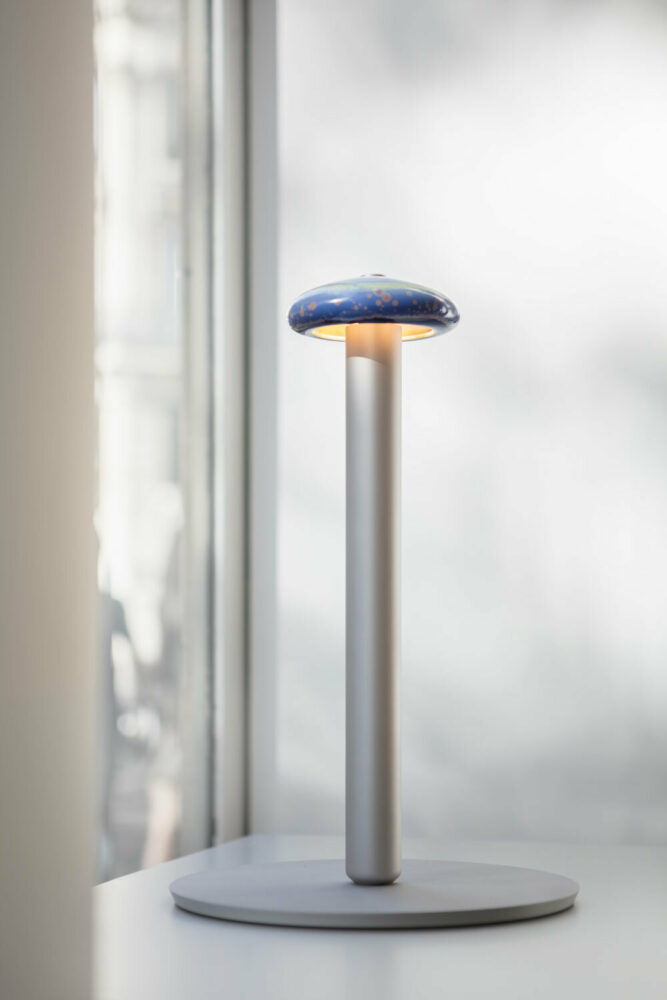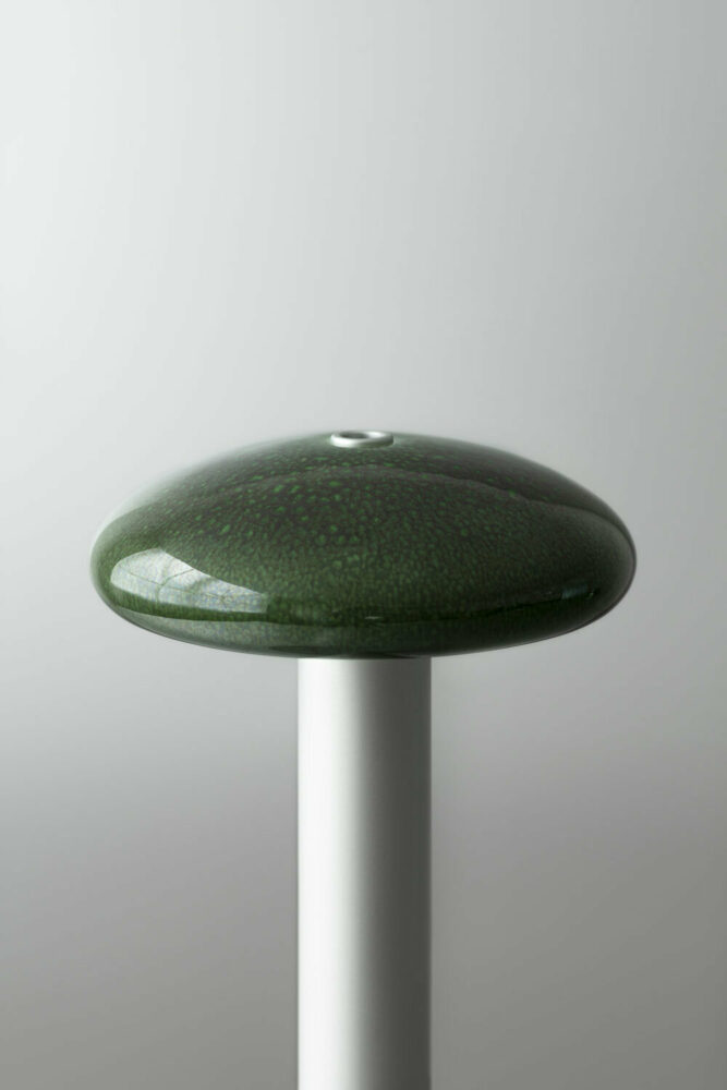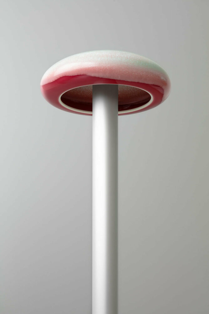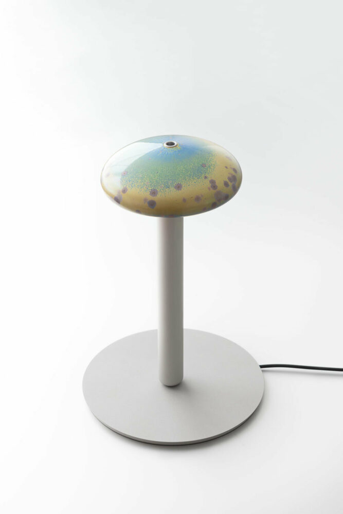 Lampes Sèvres combines traditional Sèvres craftsmanship with a contemporary aesthetic, breathing new life into age-old techniques. The aureoles are crafted by hand in the manufacture’s studio and then spray-glazed. Ronan Bouroullec discovered the glazing technique, which provides an ethereal quality, by examining old experiments with crystallization in Sèvres archives. During firing, the glaze crystallizes, resulting in unique and abstract patterns reminiscent of human iris, and constellations of stars or vivid bursts of fireworks.