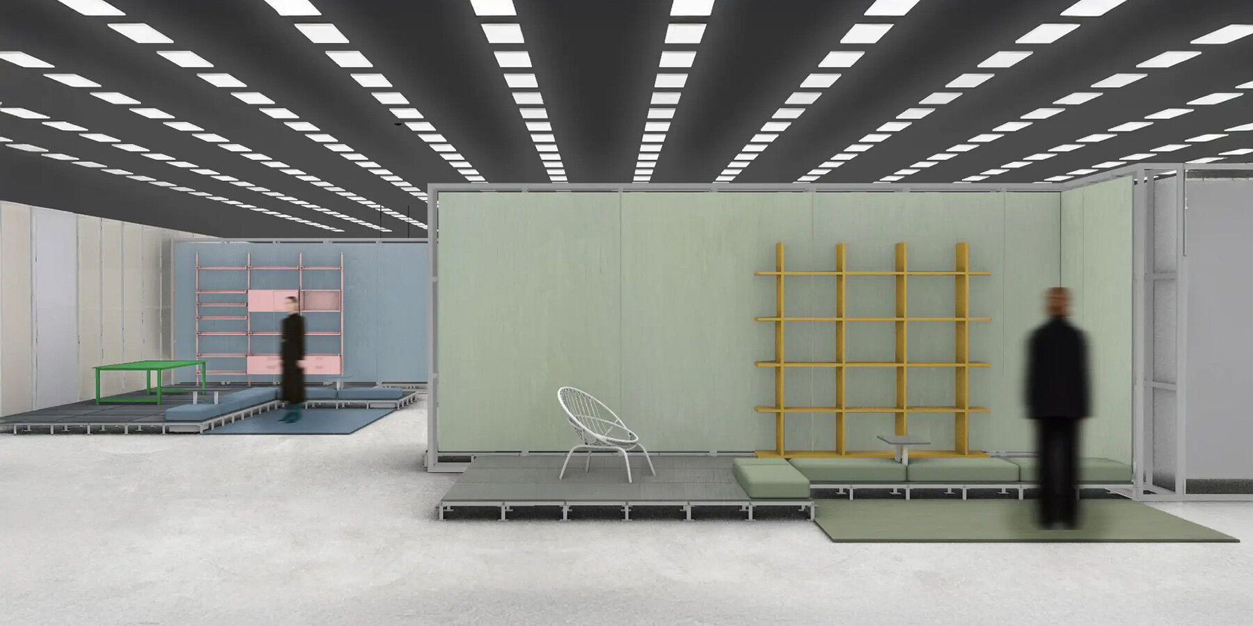 The exhibition design by Formafantasma, the studio of Andrea Trimarchi and Simone Farresin, transforms the fairground into what the duo describe as ‘a legible and permeable architectural landscape, a lantern that puts light and rhythm at the service of the pieces.’ The concept envisions a porous, material environment where the display of each gallery remains distinct yet part of a unified whole. Using a defined color and material palette, Formafantasma’s scenography keeps the space coherent and recognizable while allowing each gallery to express its own identity.