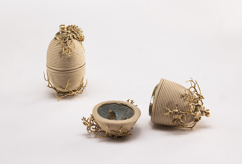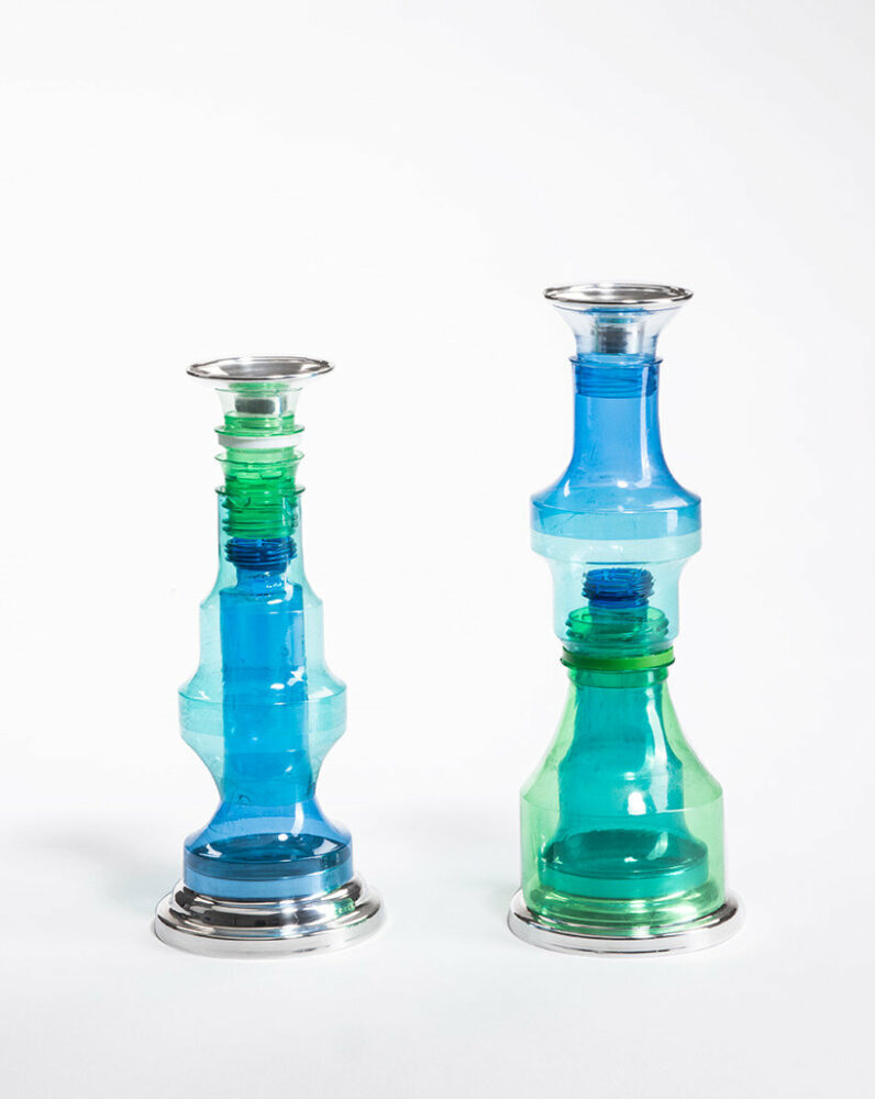 In ‘Dio-composition’, industrial designer Geffen Yamin has collaborated with multidisciplinary recycling artist Tova Peneri use common materials like plastic to make sacred dowry vessels. Meanwhile, jewelry designer Yael Friedman and artisan Eitan Posner have joined forces to create a set of medals for everyday recognition, ‘because at some point in life, each one of us can become a hero or heroine.’ These medals may be changed, disassembled, and reassembled, similarly to how typesetters in old print factories would rearrange the letters for each new printing.