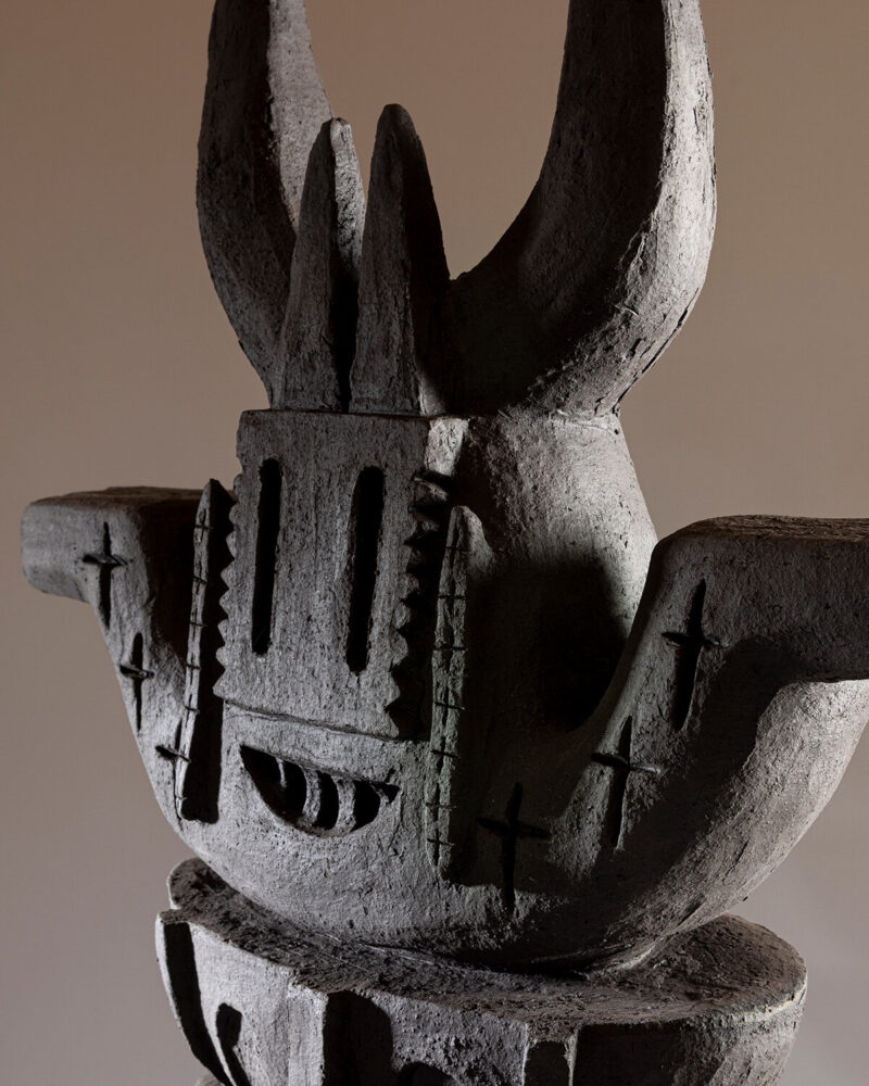 Van Overmeiren draws on references such as classical statuary and heraldic imagery