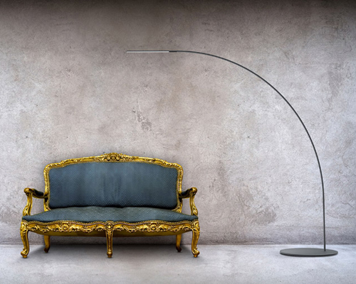 yumi floor lamp (50 x 210 x 230 cm / 18W LED) black composite material coated with carbon fibre, black lacquered metal base, direct light emission. image © designboom