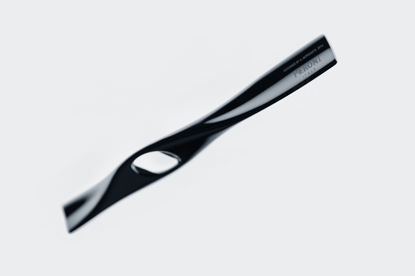 the stainless steel bottle opener ‘fuso’ (italian for liquefied), symbolizes its specific fabrication process through precision investment casting. the form is a fluid and tactile interpretation of the beer brand’s recognizable ribbon, and has an elongated shape that ensures effortless movement when opening a bottle.