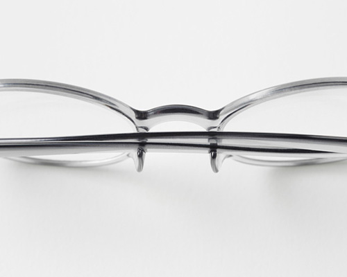 ‘snap glasses’ by | n (nendo) are reading glasses and computer lenses whose folded temples snap onto the nose piece. a slim silhouette is formed from fastening the folded earpieces to the nose pad, making them streamline, lightweight and portable. the glasses’ cloth case is cylindrical so that they can be inserted from either side, and are secured into place by snapping on the removable temples. seven different color options from matte black to glossy yellow are available in the flexible airy-light polycarbonate resin, allowing for multiple mix-and-match combinations.