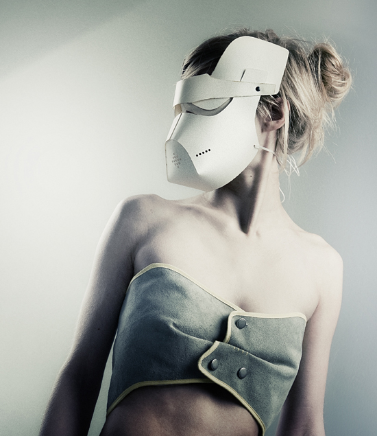 functional air-purifying grill format respirator with replaceable-cartridge white N95 filters.
