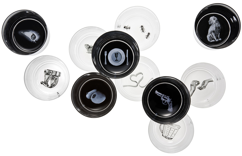 meanwhile the glasses with the clear bottom show the ‘seven heavenly virtues’ image © designboom