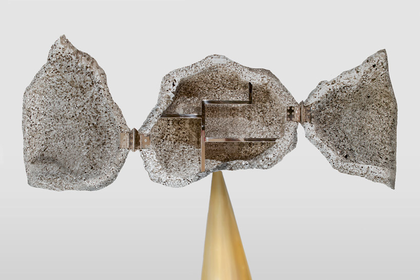 a project commissioned by pearl lam galleries, ‘metallic geology’ is a collection of small, sculptural storage units that draw their rocky forms from the customs of chinese landscape painting which often displays expressive depictions of china’s mountainous terrain — bringing the rugged environment indoors, drawing striking contrasts with the power of nature, and the still sanctuary of interiors. here, studio swine have taken what is typically considered an industrial product, and highlighted its intricate beauty.