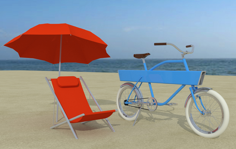 beach umbrella and chair stored in the ‘beam’ frame