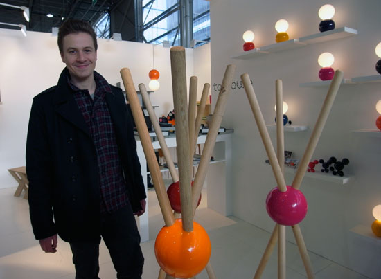 sylvain willenz with his ‘lock’ coat stand at the tamawa booth image © designboom