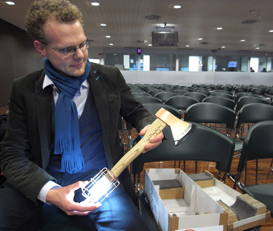 third prize winner ‘shavings stools and coffee table’ by yoav avinoam from israel image © designboom
